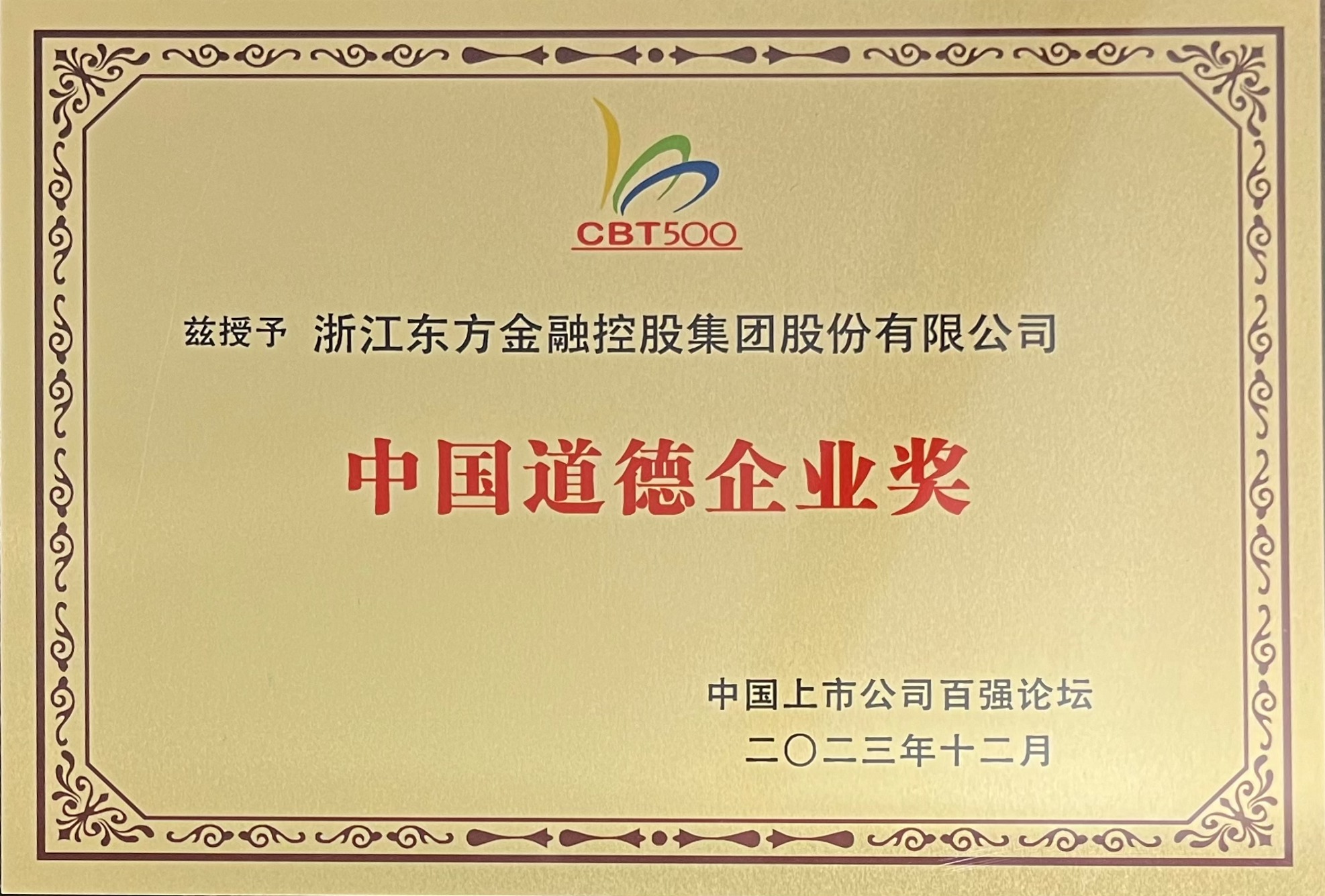 中國(guó)道德企業(yè)獎(jiǎng)由論壇組委會(huì)授予積極回饋股東和社會(huì)、重視環(huán)境保護(hù)、最具社會(huì)責(zé)任的上市公司。浙江東方作為國(guó)有上市金控平臺(tái),始終心懷“國(guó)之大者”,堅(jiān)守金融報(bào)國(guó)初心,勇?lián)鹑跒槊袷姑愿咚降木C合金融服務(wù)賦能實(shí)體經(jīng)濟(jì)高質(zhì)量發(fā)展。公司堅(jiān)持黨建引領(lǐng),深化國(guó)企改革,不斷提升公司治理水平,以高質(zhì)量發(fā)展成果回饋股東。公司助力綠色低碳發(fā)展,積極發(fā)揮綜合金融優(yōu)勢(shì),形成清潔能源、生態(tài)治理、綠色農(nóng)業(yè)、綠色基建、綠色制造等綠色經(jīng)營(yíng)布局。公司推進(jìn)普惠金融走深走實(shí),通過結(jié)對(duì)幫扶服務(wù)鄉(xiāng)村振興,落地慈善信托,縱深推進(jìn)“保險(xiǎn)+期貨”,開展公益贈(zèng)險(xiǎn)。此次公司獲得“中國(guó)道德企業(yè)獎(jiǎng)”也表明市場(chǎng)和社會(huì)對(duì)公司的肯定和認(rèn)可。